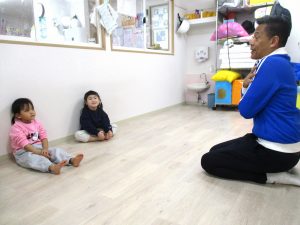 お話の中に「やだ やだ やだ やだ ヤダットちゃん・・・🎶」という歌詞の歌が何度か出てくると「いやだ」という振り付けをして体を動かしているお子さんの姿が見られました。