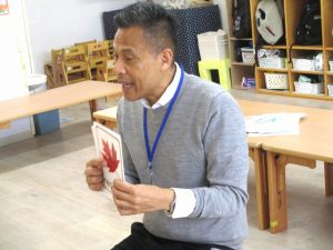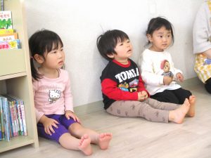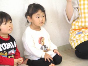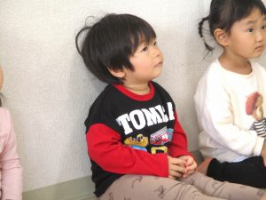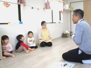 講師の英語を静かに聞いたり、CDの歌に合わせて講師や友だち、保育士と一緒に体を動かしたりして楽しんでいました。