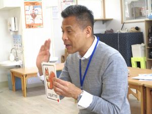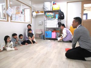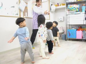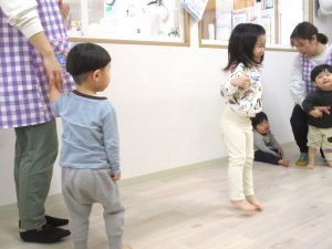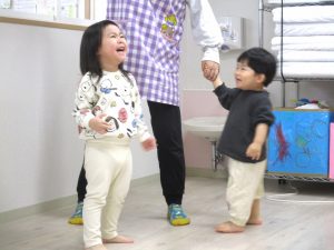 講師が保育室に入って来ると、笑顔で嬉しそうにするお子さんの姿が見られました。