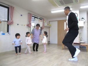 今日は、講師や保育士と一緒にダンスに挑戦したり、絵カードを見ながら英語を発音したり、ゲームをしたりして楽しんでいました。