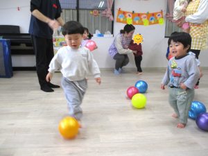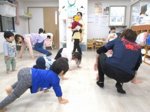 講師や保育士、友だちと一緒に、体をたくさん動かして楽しそうに取り組んでいるお子さんの姿が多く見られました。