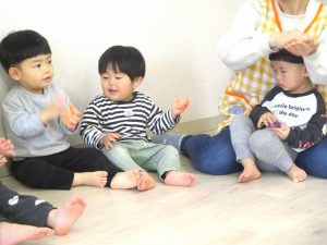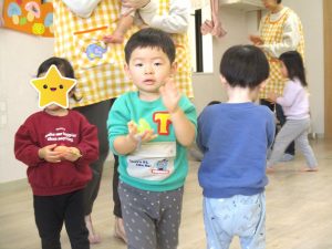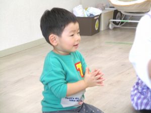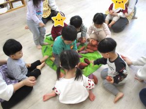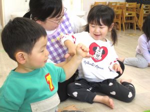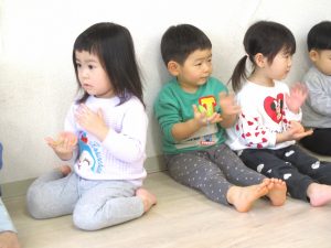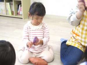 さつまいもが焼けるまでの間、みんなで『やきいも グーチーパー』の手遊びを楽しみました。