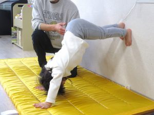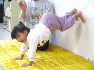 サーキット遊びでは、トランポリンや鉄棒、壁逆立ちなどに挑戦しました。