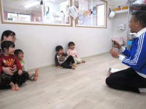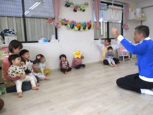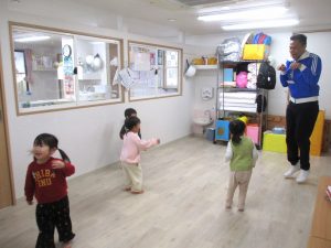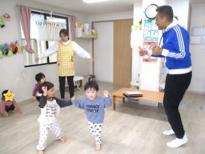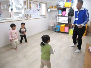 いろいろな英語の歌に合わせて講師の身振り手振りを真似しながら、体を動かして楽しんでいました。
