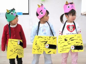 ちょっぴり怖かったけど、鬼に負けないように頑張った豆まき会でした。