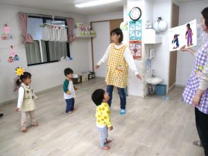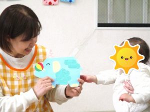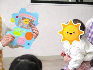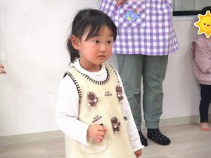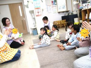 保育士が誕生児さんが何歳になったのか、好きな食べ物やできるようになったこと等お話しすると、みんな集中して聞いていました。