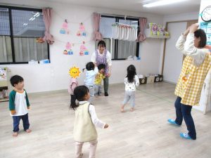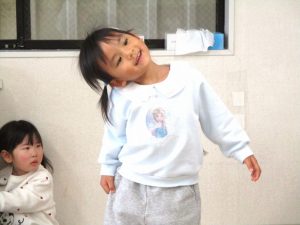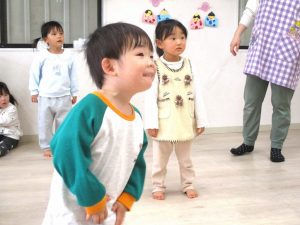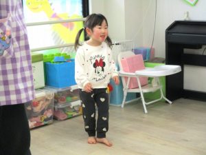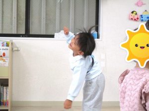 お楽しみコーナーでは『できるかな?』『かみなりビリビリ体操』の2つの体操で体を動かして楽しみました。